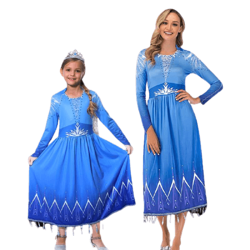Ce costume est une version de la célèbre Elsa Reine d’Arendelle, la Reine des Neiges ! Comme toutes les petites filles, votre enfant veut ressembler à une princesse ! Quelle joie de pouvoir s’habiller avec sa maman !