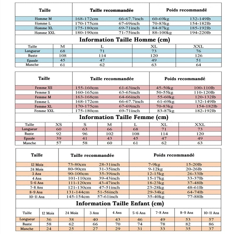 Afin de déterminer la bonne taille, un guide des tailles du pull de noel famille est à votre disposition.