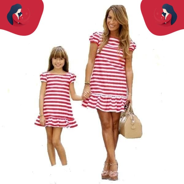 Découvrez chez Tenue mère fille cette magnifique robe assortie mère-fille à rayures rouges et blanches, idéale pour un duo mère-fille.