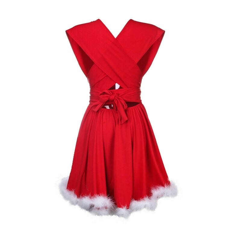 Cette robe est en polyester léger et extensible qui vous permet de bouger avec aisance. Elle est courte et sans manches et est de couleur rouge à liserés blancs. Parfaite pour le Réveillon de Noël, cette robe vous et votre enfant fera briller !